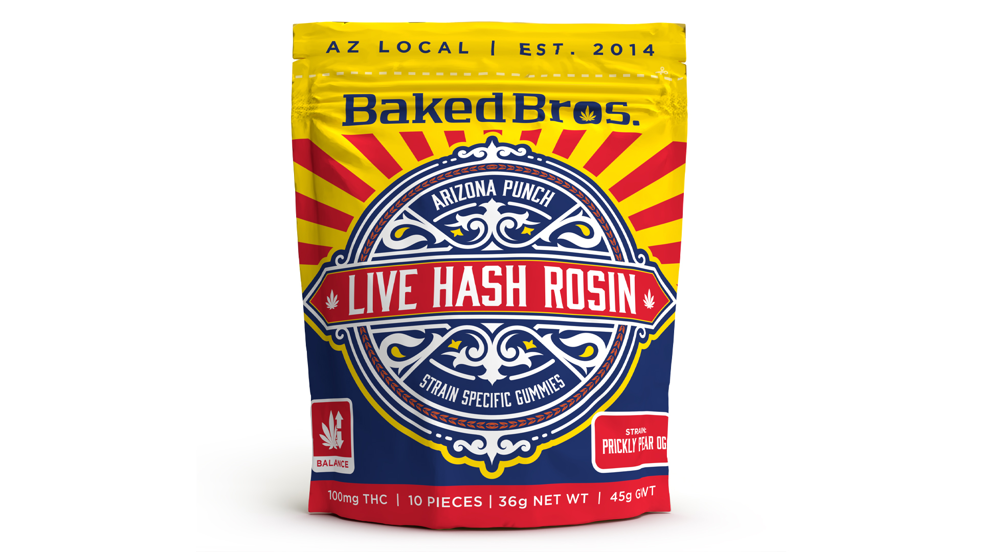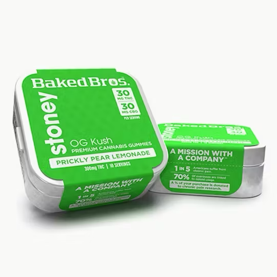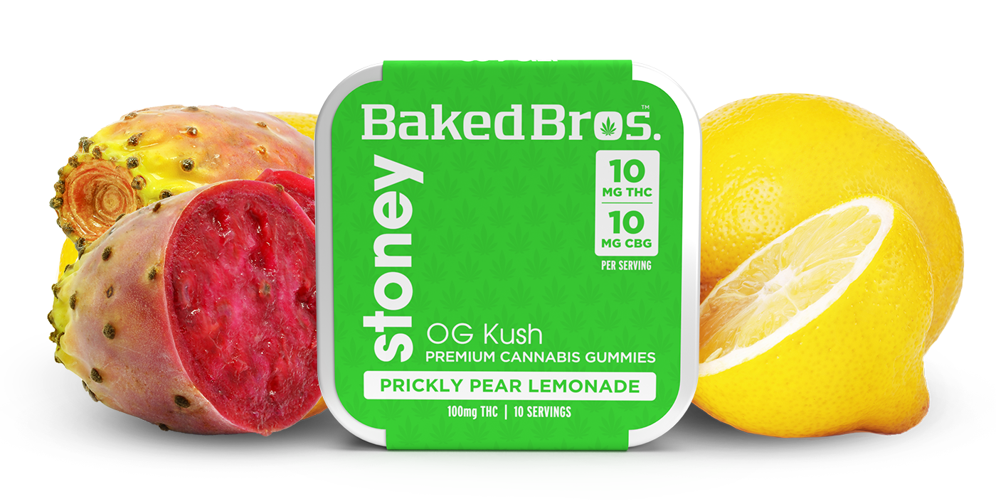 BAKED BROS - GUMMIES - 100MG THC / 100MG CBG - 10PK - STONEY PRICKLY PEAR LEMONADE - OG KUSH - HYBRID