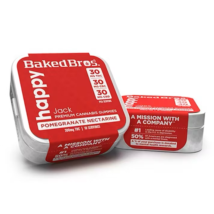 Baked Bros Happy Pomegranate Nectarine 1:1:1 (300mg THC : 300mg CBD : 300mg CBC) - Jack Herer
