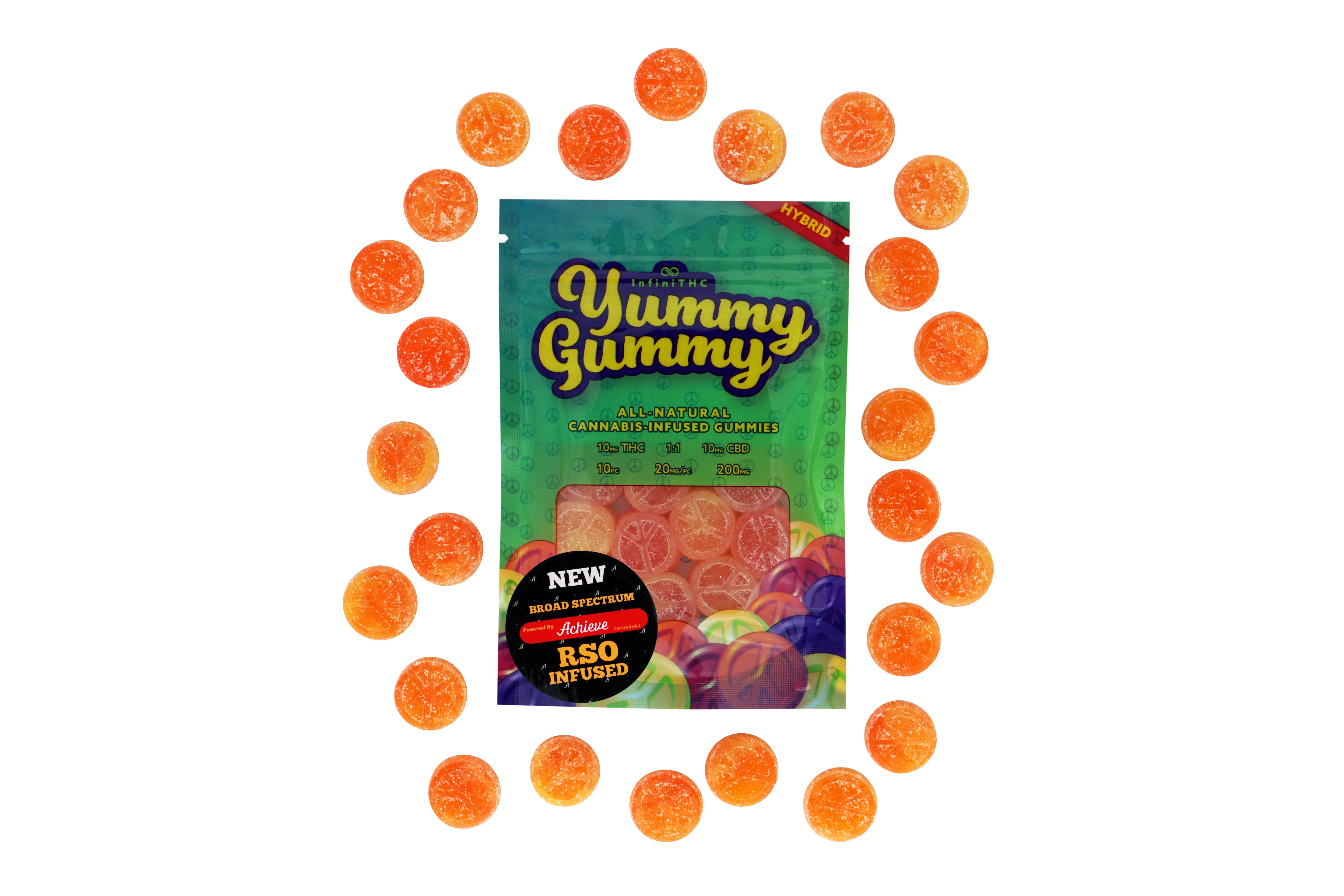 YUMMY GUMMY - GUMMIES - 100MG THC / 100MG CBD - 10PK - 1:1 RSO RADBERRY - HYBRID
